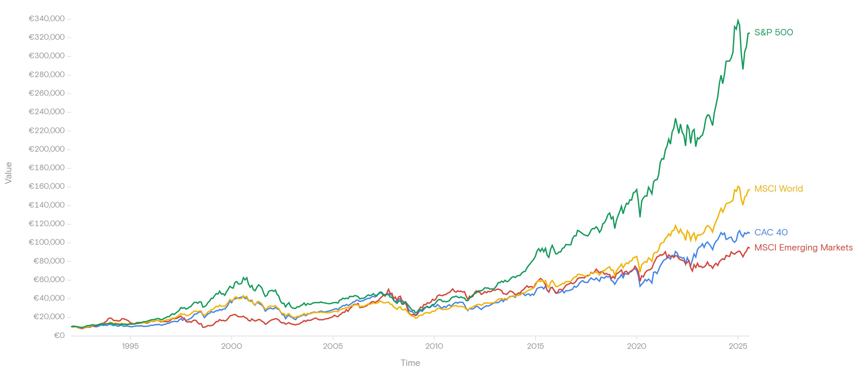 J’ai ajouté le graphique pour montrer les mauvaises performances des marchés émergents. L’argument selon lequel ils « émergeront dans les cinq prochaines années » est utilisé depuis des décennies, mais ils restent toujours moins performants.