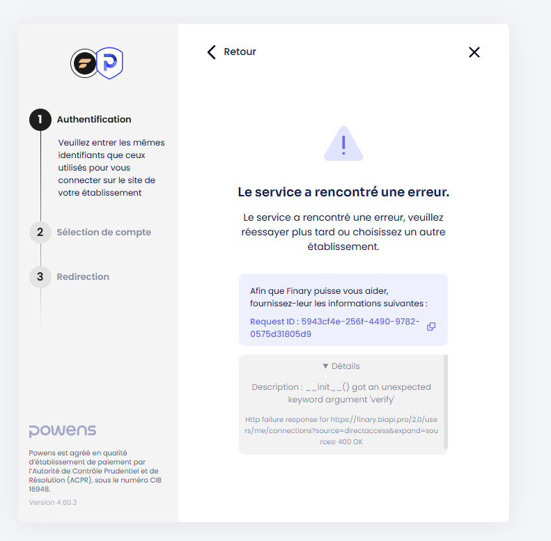 "Nous avions dĂ©jĂ contactĂ© notre partenaire Powens au sujet du problĂšme que vous rencontrez. AprĂšs analyse, ils nous ont informĂ©s quâils ne pouvaient pas prioriser la rĂ©solution de ce souci pour le moment, car il impacte un trĂšs faible nombre dâutilisateurs. Cela dit, nous nâhĂ©siterons pas Ă leur demander de réévaluer la situation si dâautres signalements similaires nous parviennent Ă lâavenir.
