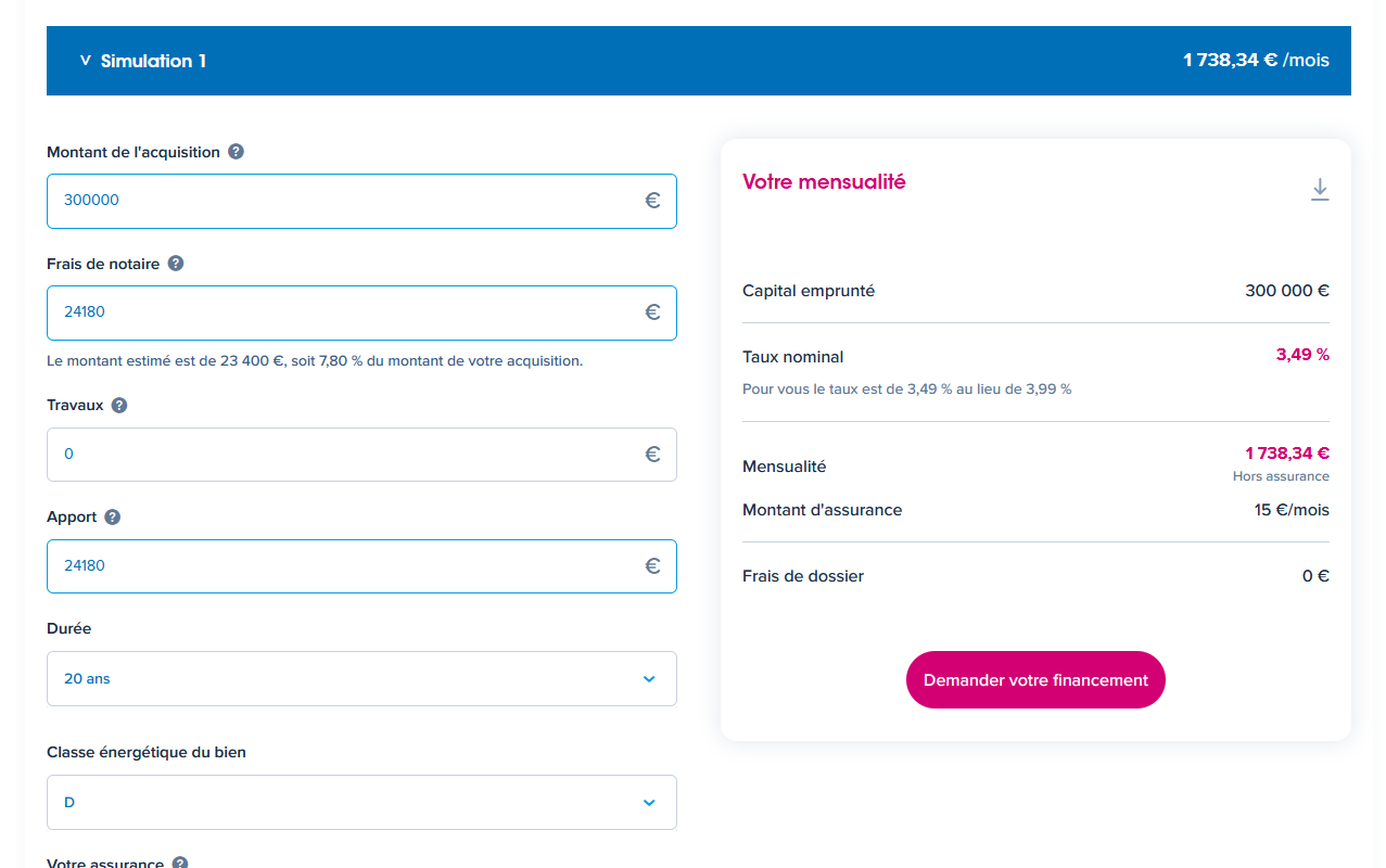 Je viens de faire une simulation sur boursobank qui est ma banque principale il propose du 3,99% sur 20 ans. Pas intéressant je vais les appeler quand même. Merci