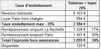 Au final, mon emprunt pour ma RP & pour mon locatif sont quasiment équivalents et même si mon loyer rembourse quasiment mon crédit, j’étais déjà à + de 16% d’endettement.