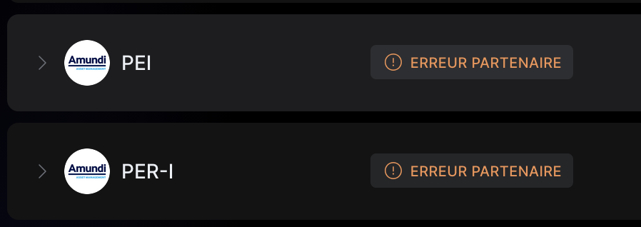 Depuis quelques mois, la synchronisation Amundi (EE) est capricieuse ; j’ai systématiquement besoin de relancer le processus de synchronisation avec Finary. Cela synchronise bien mais depuis ce matin j’ai des erreurs me disant : Erreur Partenaire