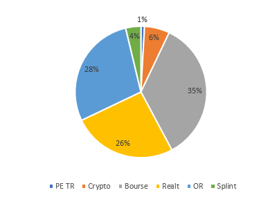Splint Invest : 4%=> exotique : art et lego surtout, plus cartes de collection, wiski, voiture…