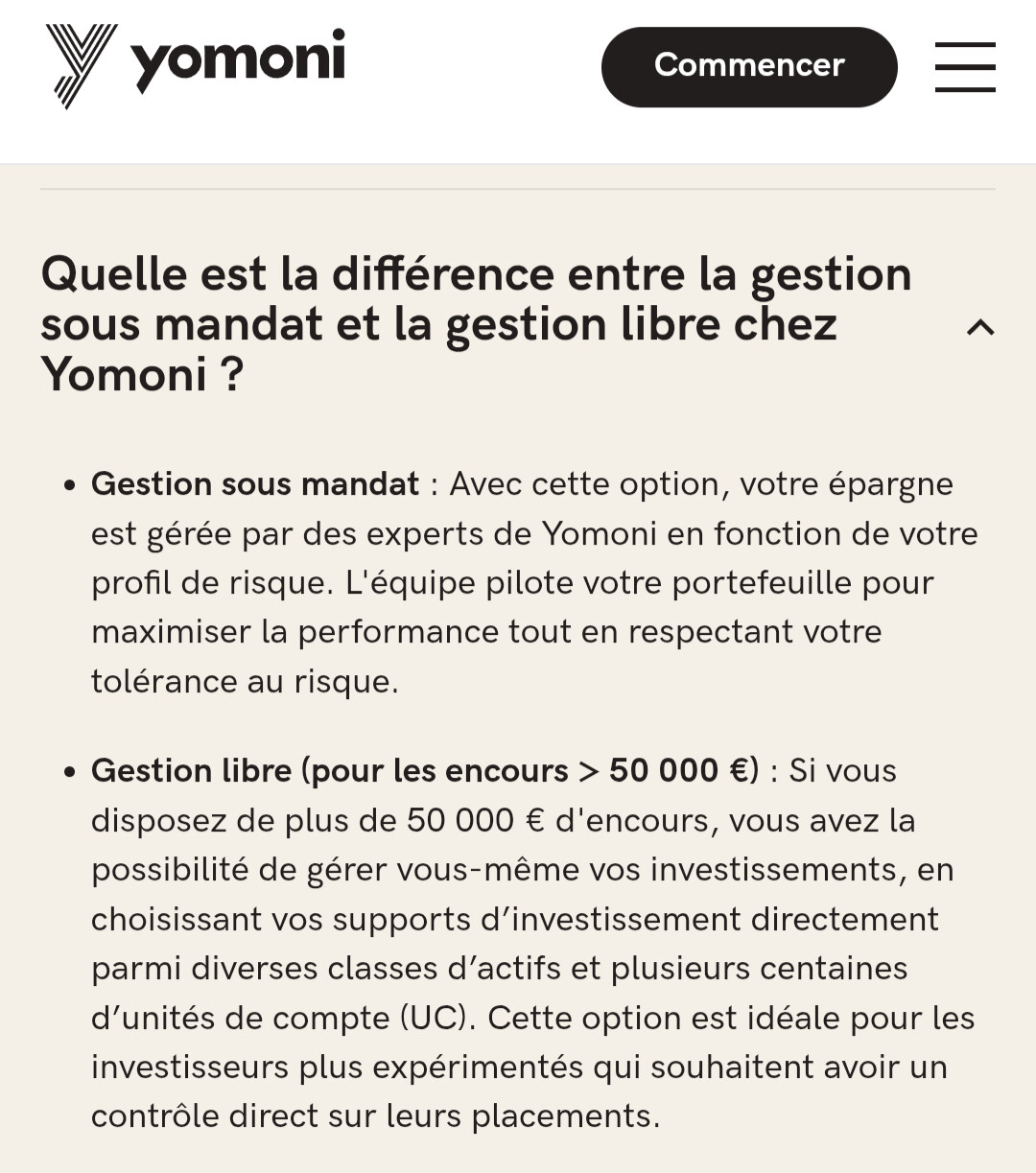 Jâai une question pour la communautĂ© concernant lâAV Yomoni que jâai ouvert rĂ©cemment, pour moi cette AV propose que de la gestion pilotĂ© de ce que jâai compris, nĂ©anmoins si je veux faire un dĂ©pĂŽt ponctuel, il me propose le choix du libre ( avec possibilitĂ© de choisir un fond ou UC etc⊠), du coup je suis un peu perdu, finalement il y a les deux choix ? ou le libre est rĂ©servĂ© au dĂ©pĂŽt ponctuel et pas pour les programmĂ©s ?