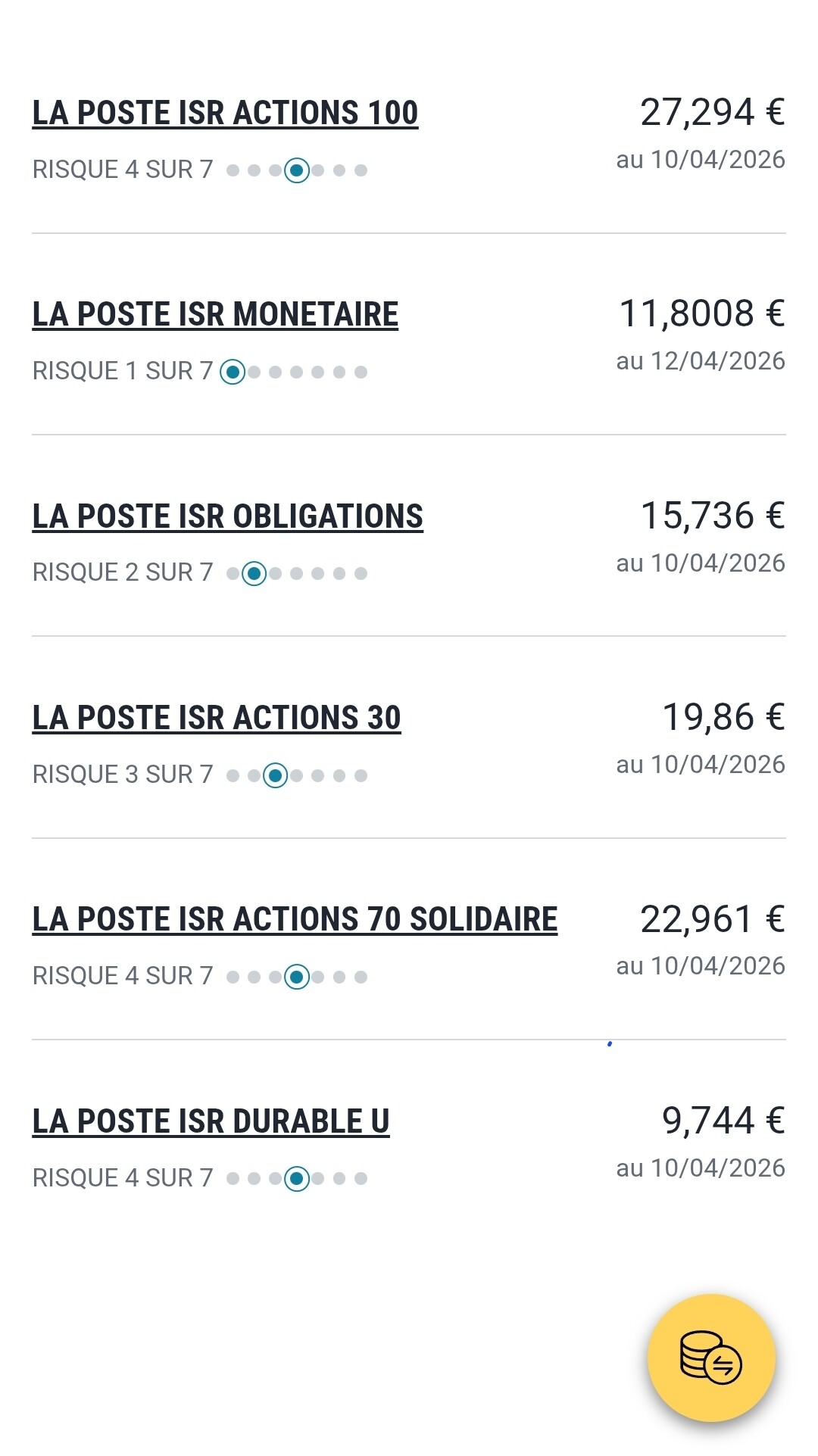 Les fonds ne sont pas super variés et pas hyper performants cependant ca va du monétaire à du 100% Actions (70% Europe et 30% US).