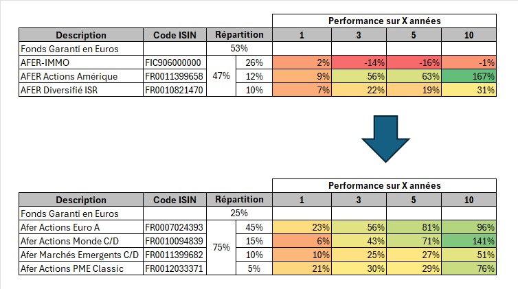 J’ai ouvert il y a plus de 10 ans une assurance-vie AFER, sur laquelle j’avais versé 15 100 €, avec une répartition initiale réalisée par mon conseiller. Jusqu’à récemment, je n’avais jamais vraiment suivi l’évolution de ce contrat. En décembre 2025, je me suis rendu compte de la très faible performance globale, ainsi que du choix assez limité d’unités de compte disponibles sur ce contrat.