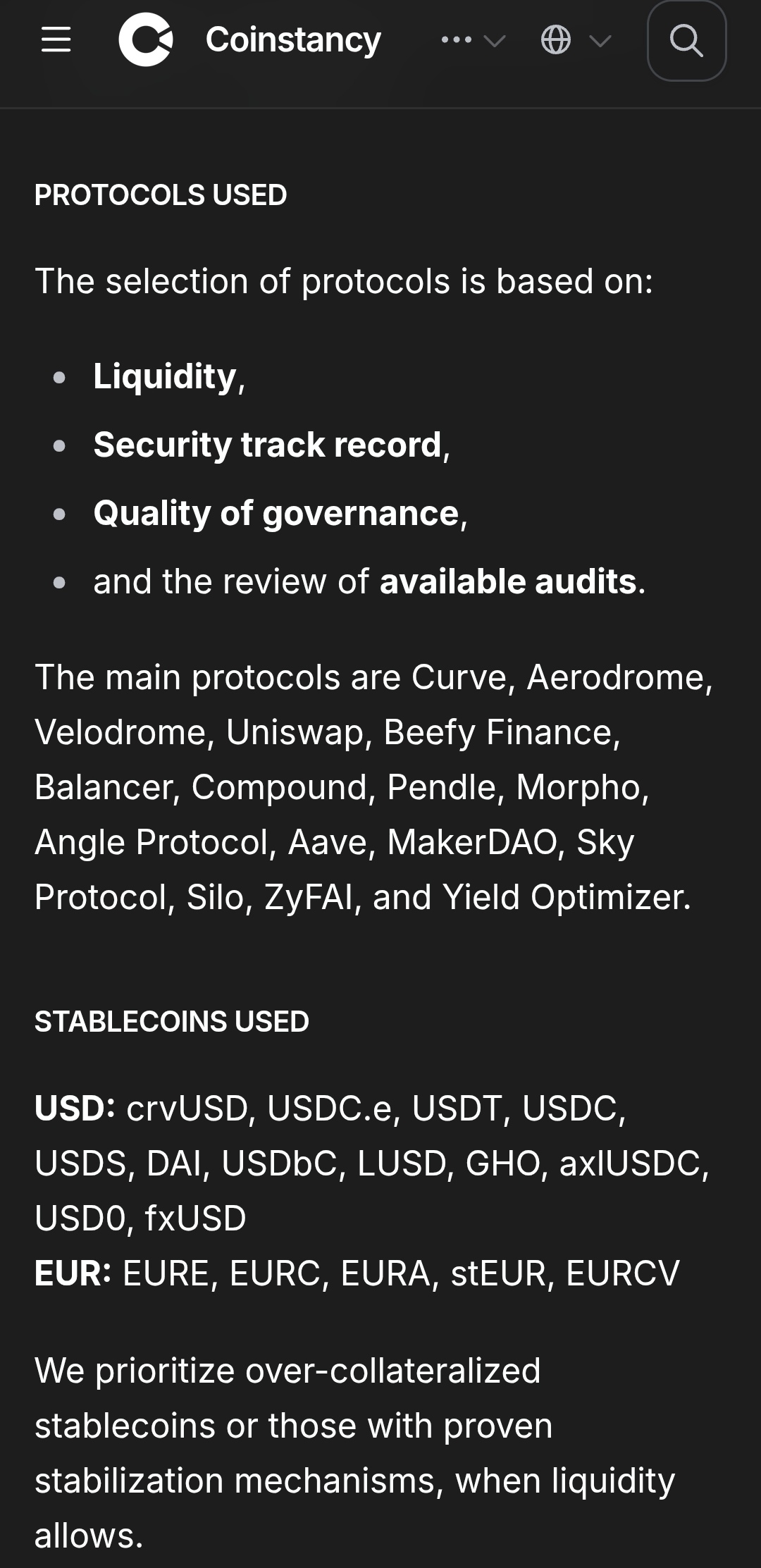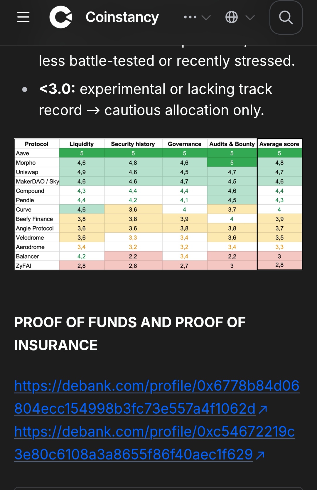 Coinstancy sont exposés aux protocoles de finance décentralisée suivants : Beefy / Avantis / YO Protocol / Lighter / Paradex / Balancer / Curve. Je te laisse faire tes recherches et ton propre avis.