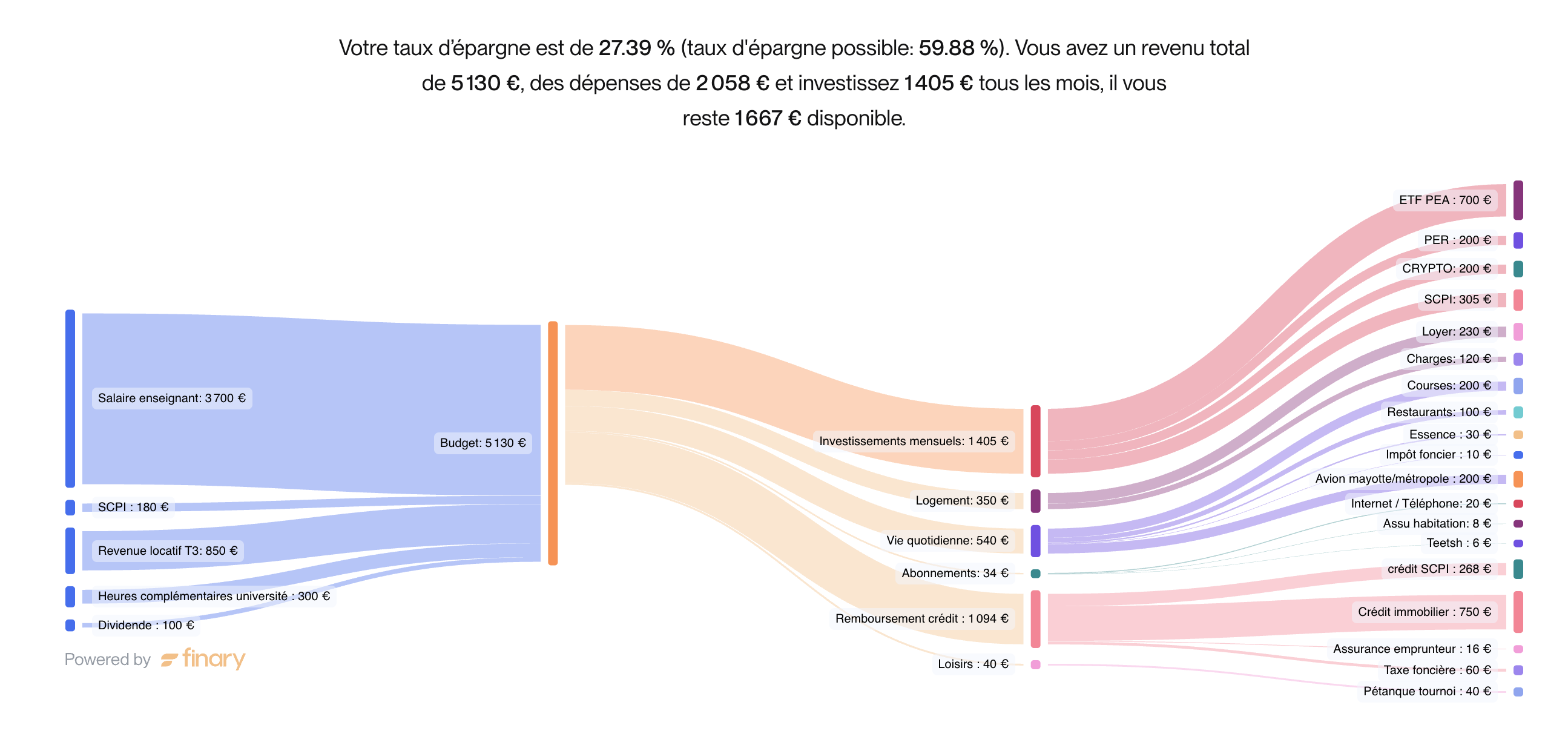 Objectif : généré un revenu passif le plus élevé possible me permettant de me libérer/réduire le travail autour de 50 ans.