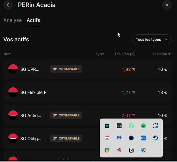 Après j’ai regardé plus en détails, ce sont que des actions Société générale , il y’en a beaucoup. Sur FInary, il m’indique que la grande majorité de ces produits sont entre 1.5%-2.14% par an. Sachant que je paie la gestion déléguée sur le PEA, Sequoia et PER: 6 euros/mois. La note est très salée.