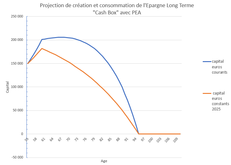 L’argent n’est pas consommé pendant 5 ans dans un PEA, puis doit assurer un retrait constant pendant 35 ans.