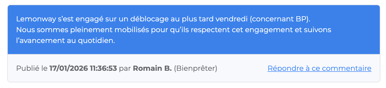 J’espère bien aussi. Ca fait quand même un bad buzz pour la plateforme. J’aimerais quand même avoir un mot de la part de LemonWay pour être davantage rassurée.