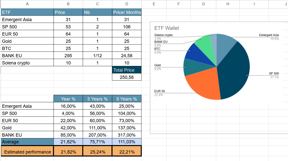 Mon but est de constituer un portefeuille résilient tout en gardant une part de risque mesuré et de paris sur le futur ( marché emmergent, cryptos …).