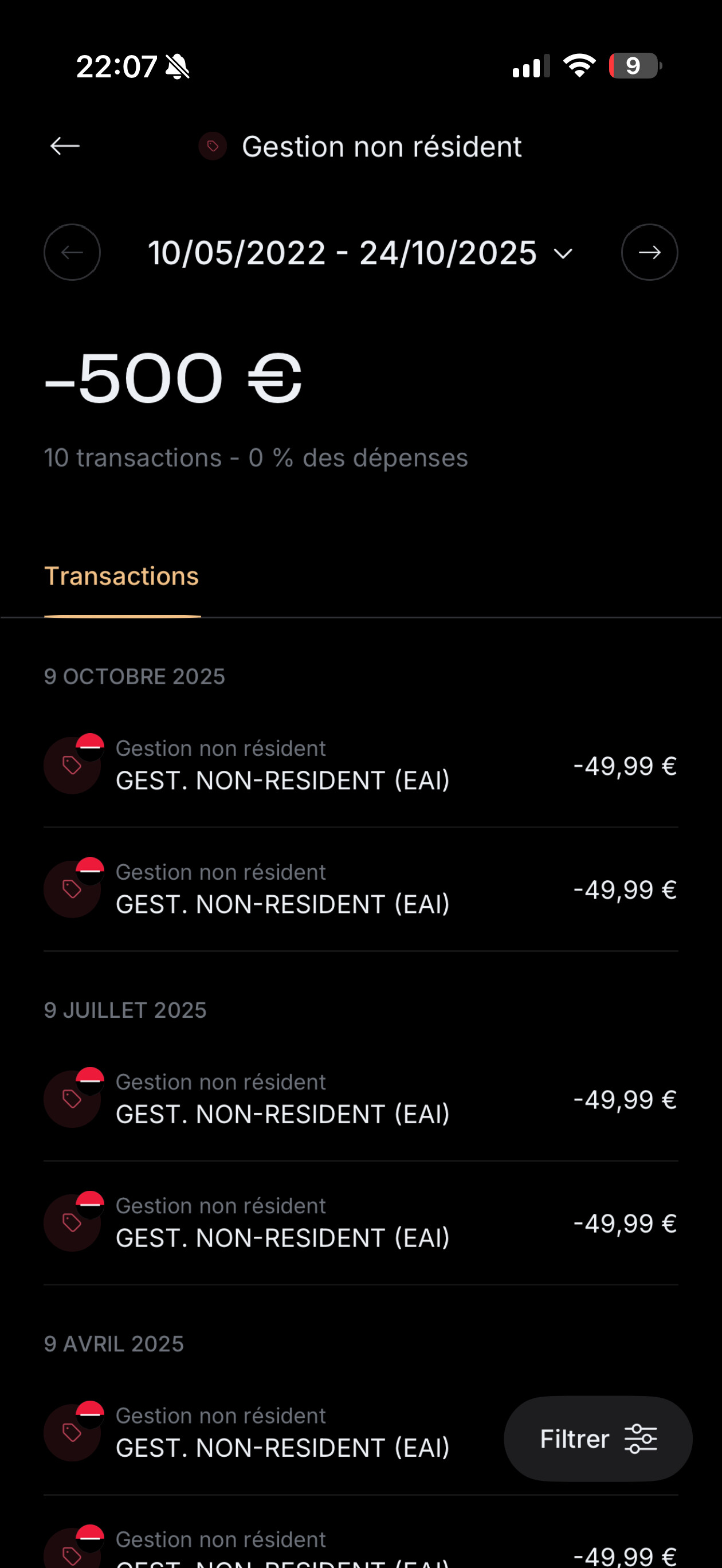 La sous catégorie gestion non resident indique 0 alors que lorsque l’on clique dessus elle est de 500 euros. Ci-dessous les screenshots