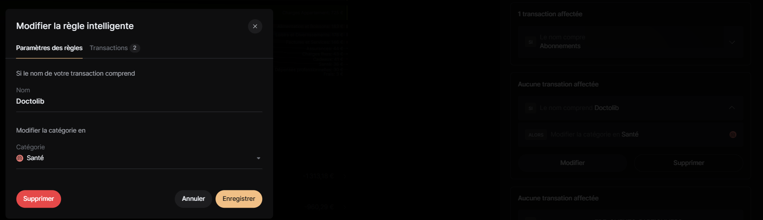 J’ai remonté ce bug via testflight mais je me permets de le faire ici aussi. Il y a un mismatch entre le nombre de transactions impactées listée dans le menu des règles intelligentes (à 0) et celui affiché quand on modifie la règle (qui lui est bon).