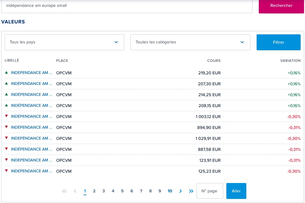 et les filtres sont assez nuls c’est soir par pays soit par actif (Actions, Devise, Introduction, Obligation, FCPI…)