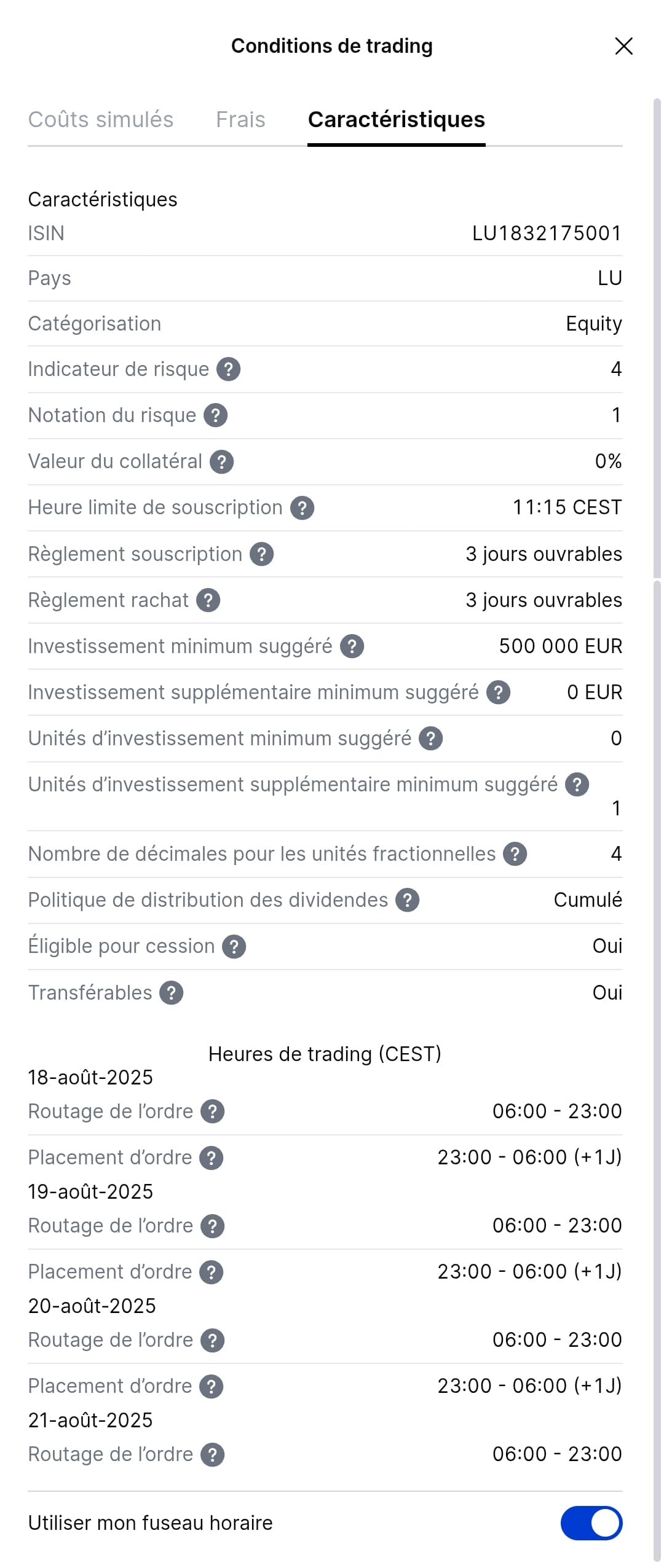 Edit : Finalement je crois en avoir trouver un en passant par le Trading Board et leur moteur de recherche qui pourtant n’a aucun filtre : LU1832174962