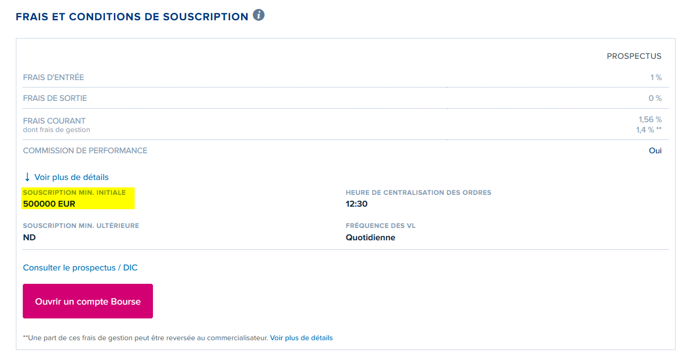 Par contre sur Bourso et Saxo, il est bien précisé que pour souscrire à la I(C) c’est 500K mini.