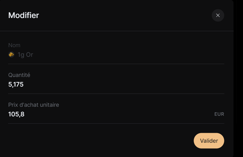 Comment faire sur finary pour ajouter un métal précieux de type bijoux, exclusivement en or 18k ? Sachant que 18k égal 75% de pureté de l’or pur