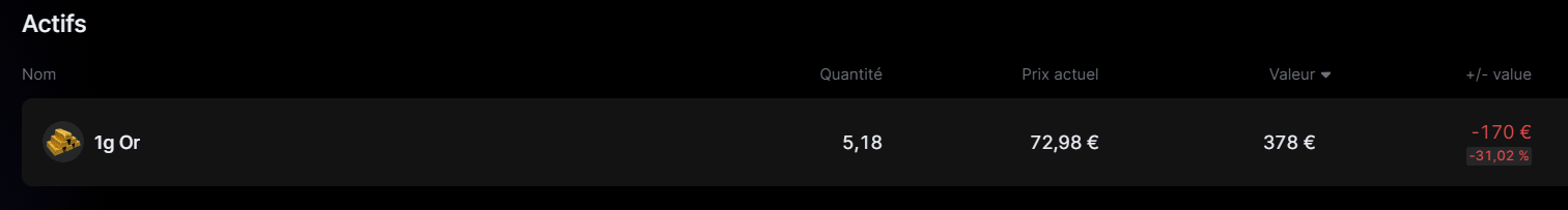 j’ai essayé ceci : dans le type actif « métaux précieux or » j’ai mis :