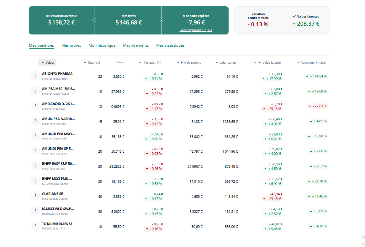 Merci d’avoir remis en détail les lignes de ton PEA.
