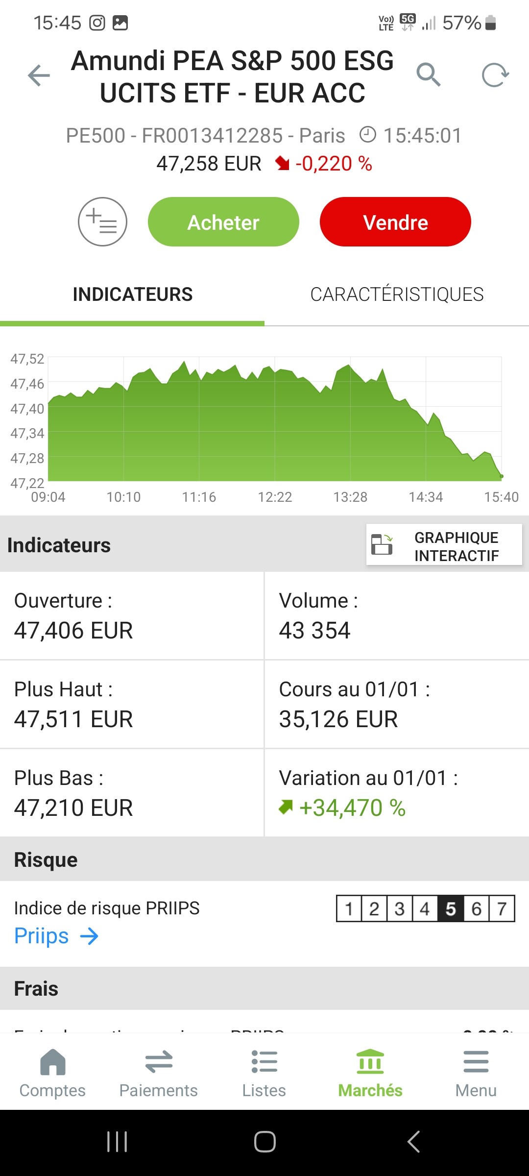 Ouvert début juin : pareil, je regarde la perf en fin de journée parce que mon ETF est indiqué sur un écran Google que je vois le soir… mais je me connecte moins… ça passe