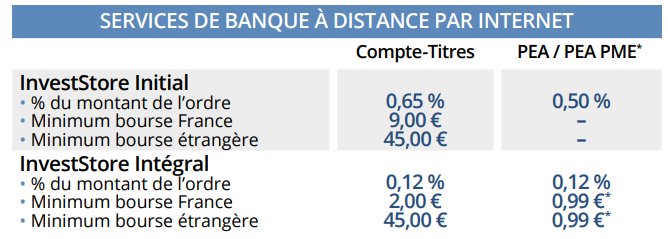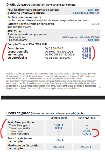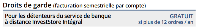 Droits de gardes : Offert si la valeur du PEA ou PEA-PME-ETI est supérieur à 20 000 € au 31/12.