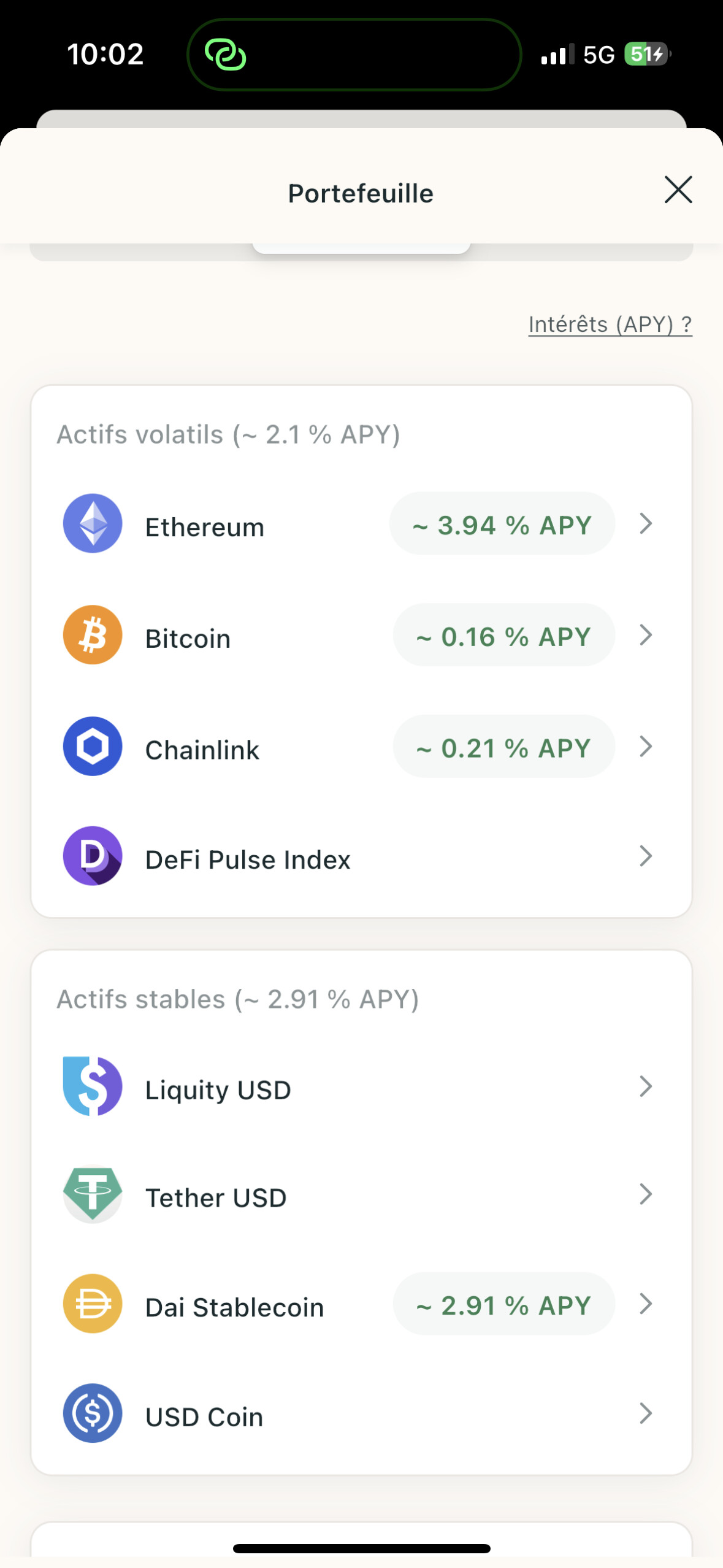 - Stacking / Landing automatique pour générer du rendement (APY)