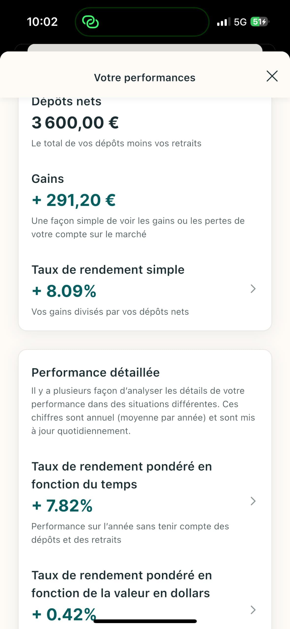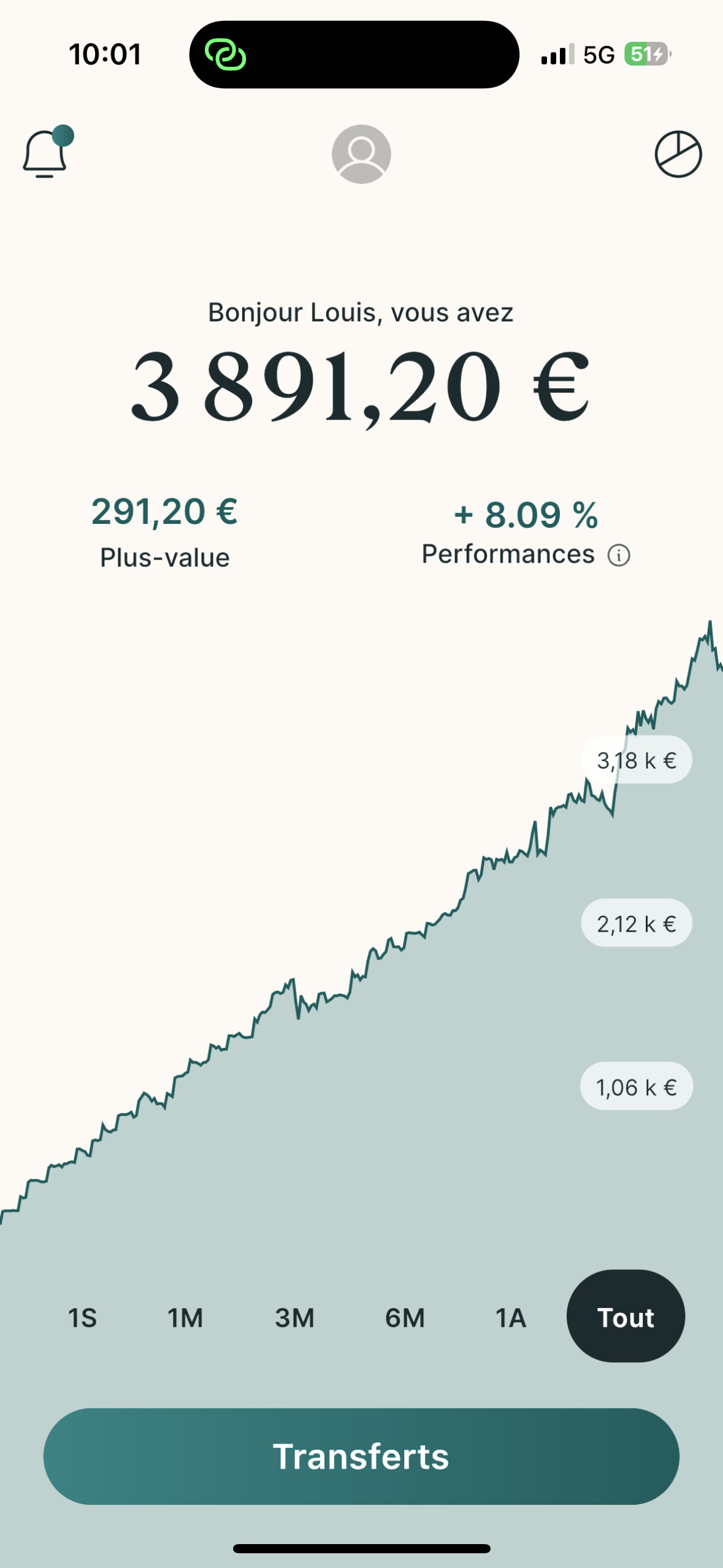 - 100⏠/ semaine en versement automatique depuis ma banque qui est automatiquement investi