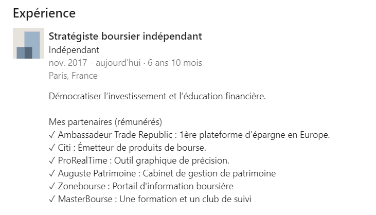 Vu sur son profil, il vend du trade republic…