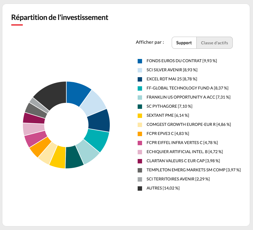 Voici la répartition de l’investissement pour mon AV CGP-Stellium (celle avec les frais élevés):