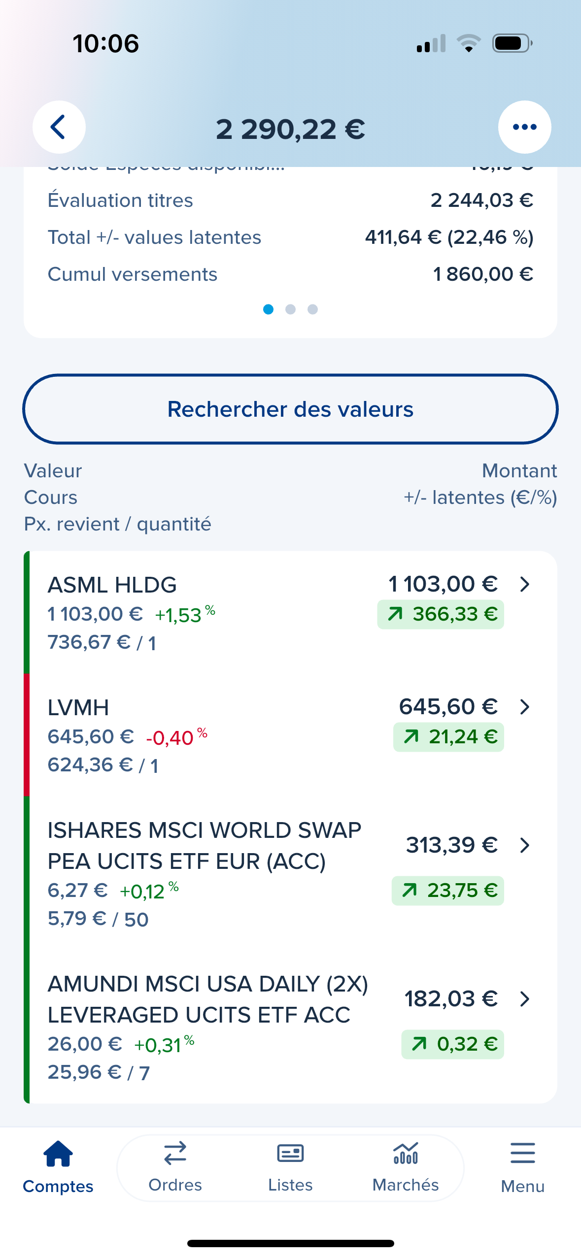 Bonjour, je suis un étudiant de 19 ans qui grâce aux vidéos de Mounir ai réussi à m’instruire et ai ouvert mon PEA il y a 1 an environ, j’ai clôturé l’année avec un bénéfice de 17,2%. Une des principales raisons de ce haut rendement est l’action ASML. En effet j’ai acheté une action ASML lorsqu’elle était au prix de 730€ aujourd’hui l’action affiche un prix de 1040€ et a battu son ATH. Dans ce genre de situation, et étant donné que ma conviction sur cette action n’a pas changé dois je garder l’action ou est il plus sage de la vendre et attendre une baisse ( qui pourrait ne pas arriver j’en suis conscient) vers des niveaux plus bas (~950€). Quelle est la stratégie à adopter sur des actions qui ont explosé comme ça ? Je n’ai pas vendu Nvidia a son ATH et n’ai pas envie de faire 2x la même erreur. Je laisse donc les investisseurs plus expérimentés me donner des conseils. Que me recommanderiez vous ?