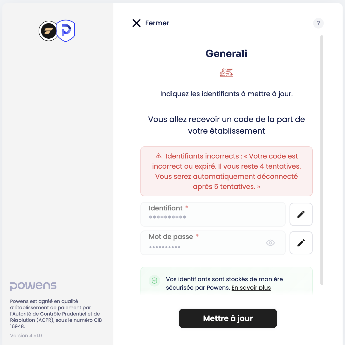 Je reçois egalement un code sms à chaque tentative de synchro de Powens.