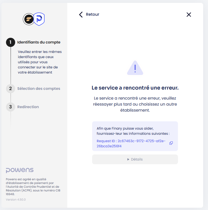 Je viens de me rendre compte que 1 de mes comptes Yomoni nâa pas Ă©tĂ© synchronisĂ© depuis 1 mois et je nâarrive pas Ă le re-synchroniser. Powens renvoie un « bug de la connexion ».