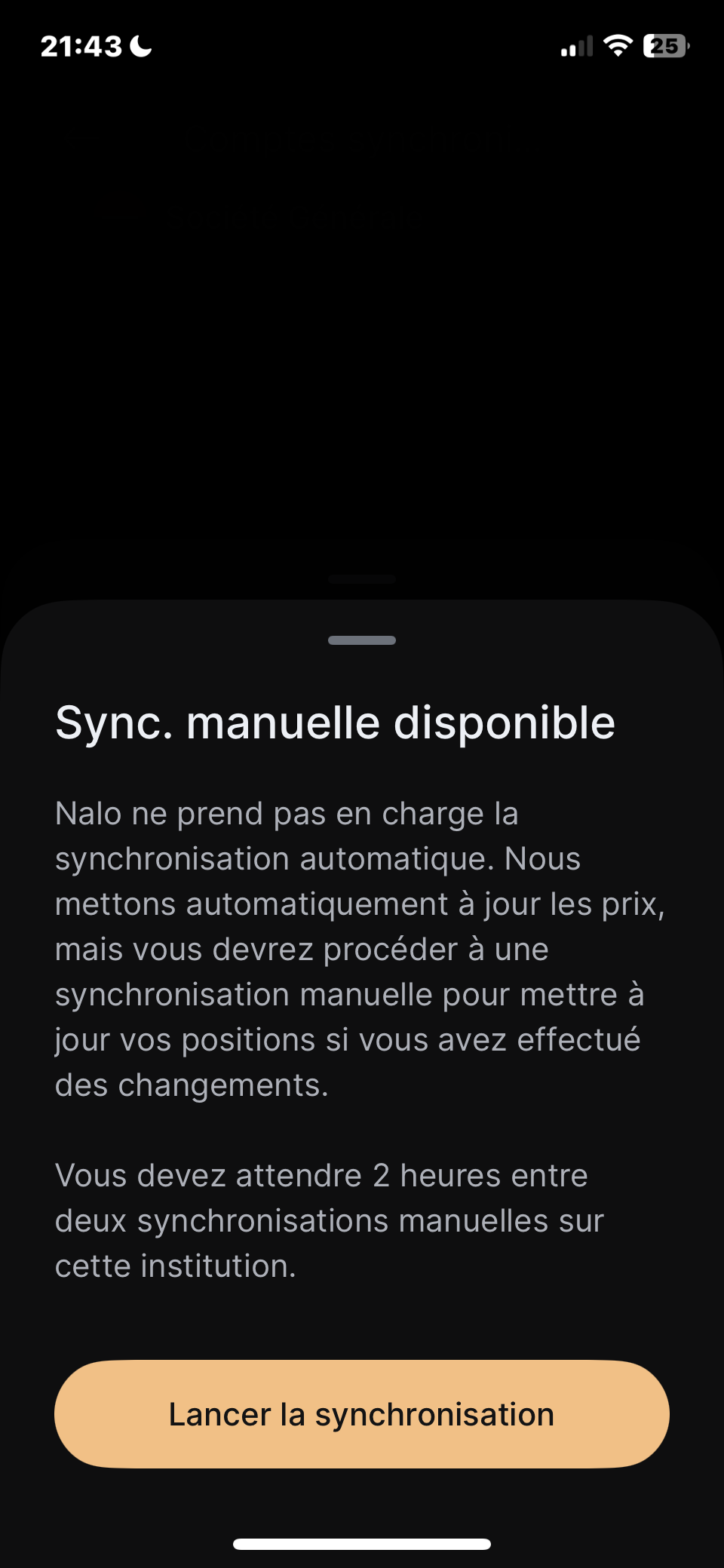 Bonjour à tous : je ne parviens pas à connecter mon assurance vie, Nalo, et ce même en mode manuel ? Que faire ? Pour votre aide. O.