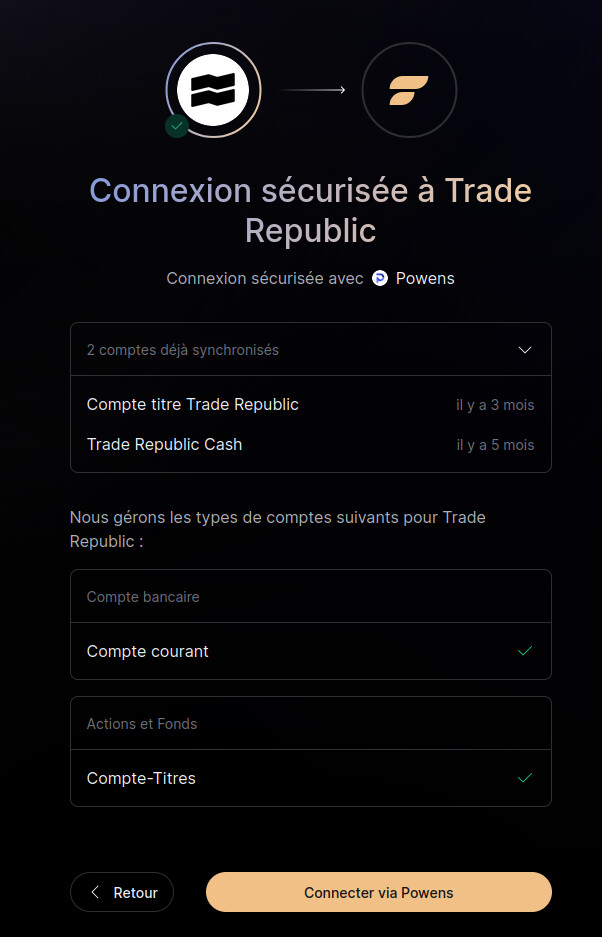 Nous continuons Ă travailler avec Powens pour vous apporter un meilleur suivi de vos portefeuilles Trade Republic.