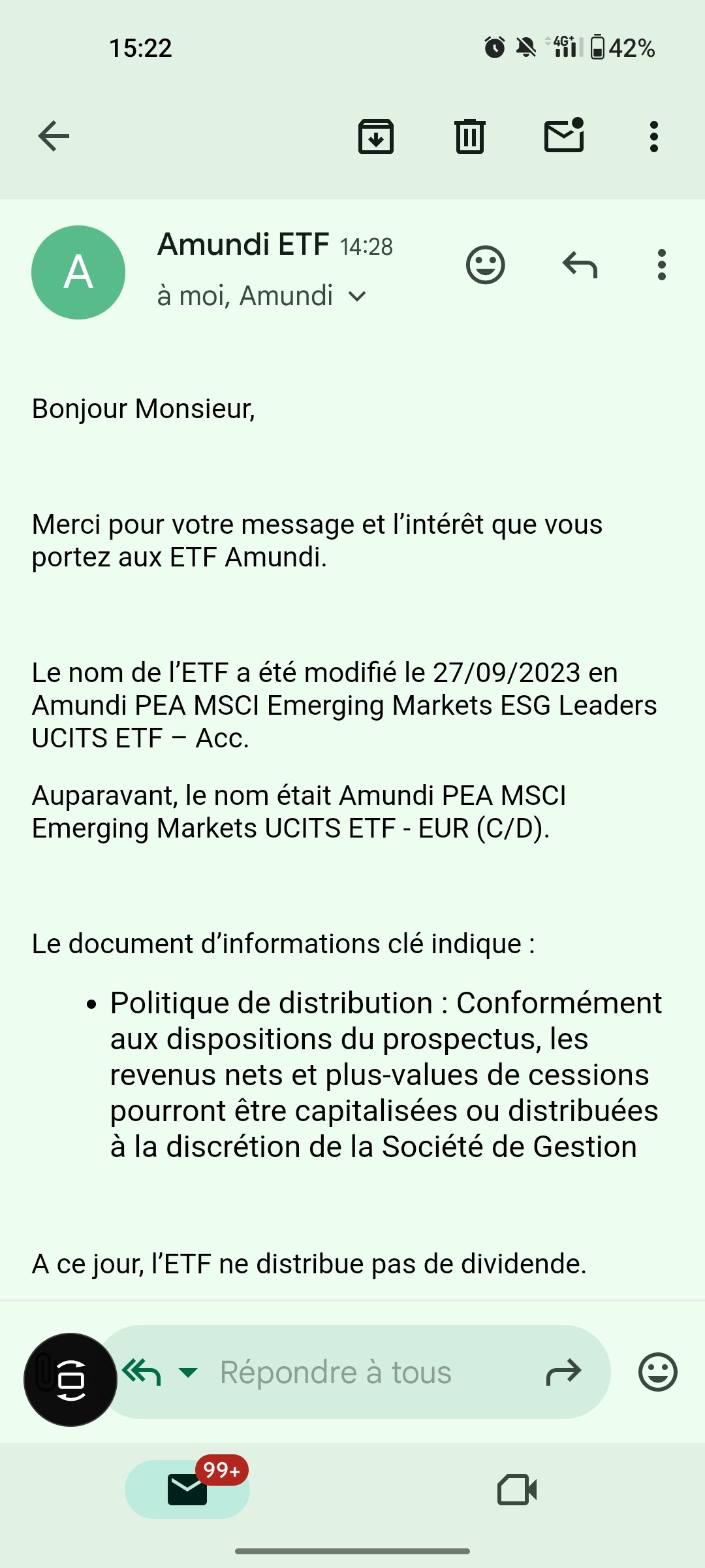 J’ai enfin eu la réponse d’AMUNDI.