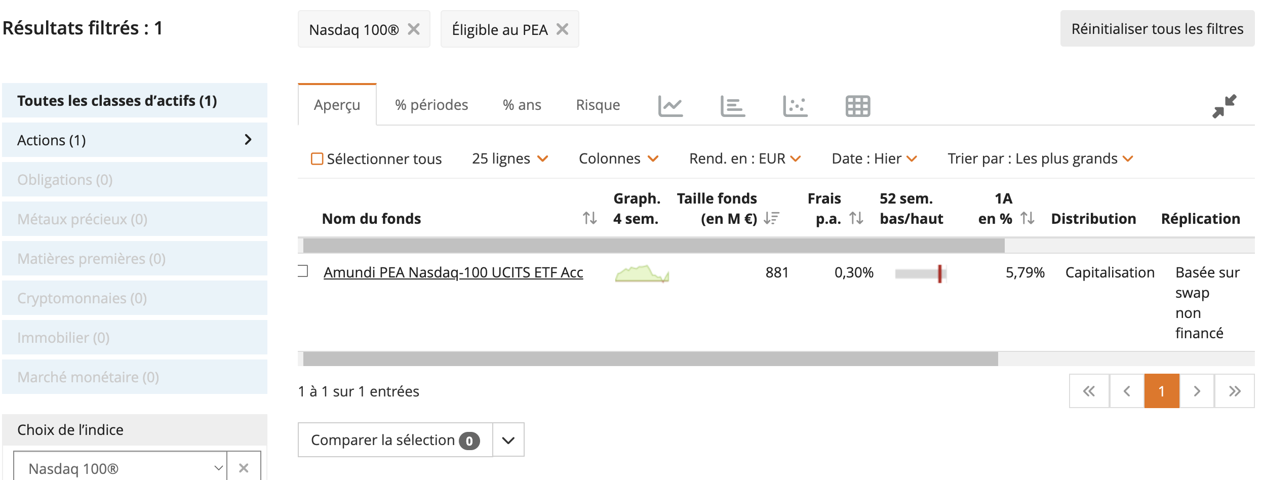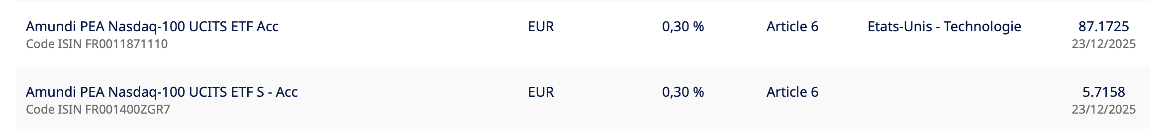 Je viens de basculer mon PEA sur IBKR et je découvre que j’ai accès à BEAUCOUP plus de choix sur les ETF pour S&P500 ou Nasdaq100 (par rapport à mon ancien courtier) > des fonds plus grands et un TER plus bas, bref des meilleurs choix.