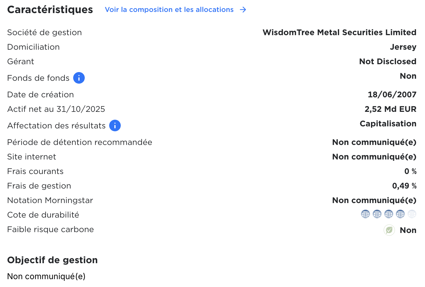 Malheureusement, il n’est pas possible d’acheter un ETF composé d’or physique ou de métaux précieux au sein d’un PEA, car les gérants de ces fonds sont souvent situés en Suisse, au Royaume-Uni ou aux Etats-Unis et donc hors de l’Union Européenne.