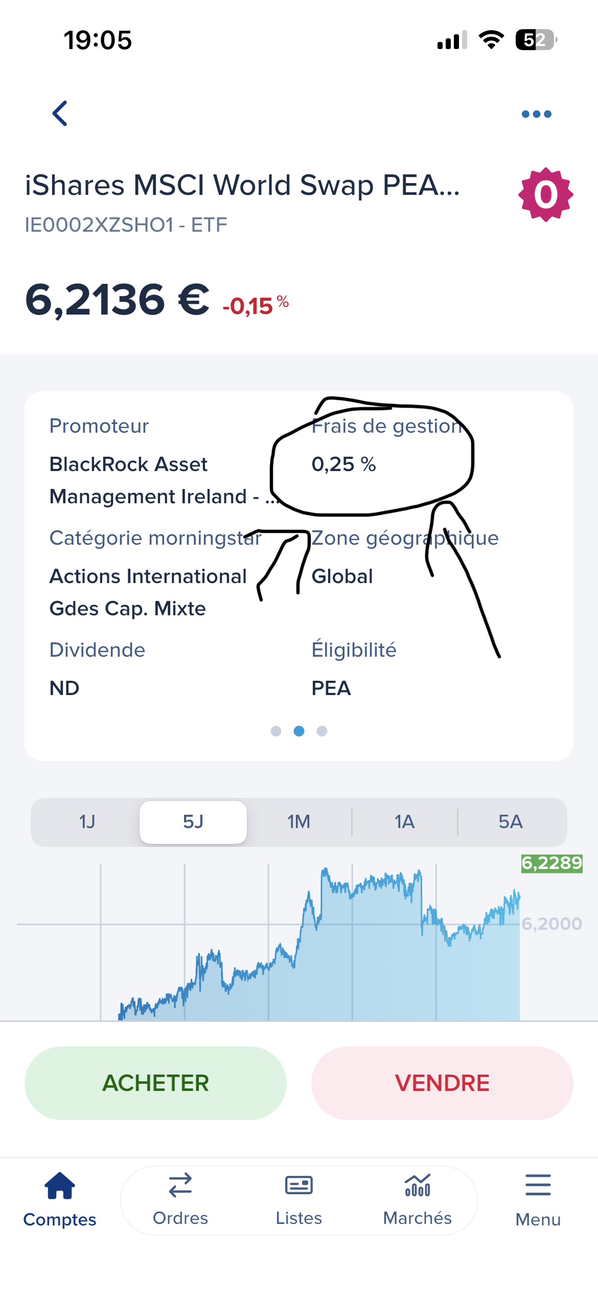 J’ai finalement tranché depuis que le montant minimum pour investir dans l’ETF de BlackRock est passé à 500 euros minimum.
