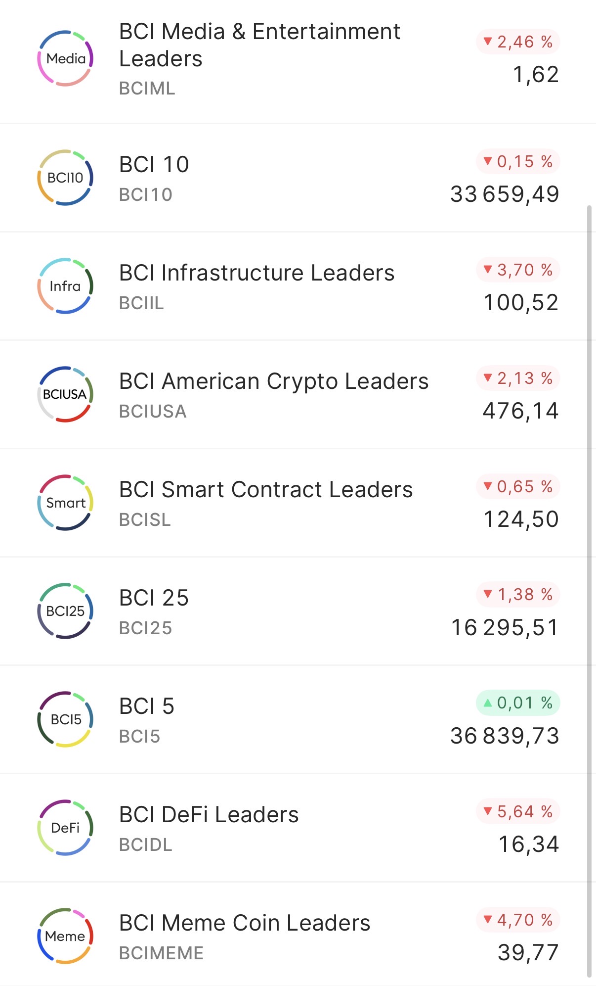 Le BCI25 par exemple, regroupe les 25 plus grosses cryptos du marché, l’indice est ajusté mensuellement :