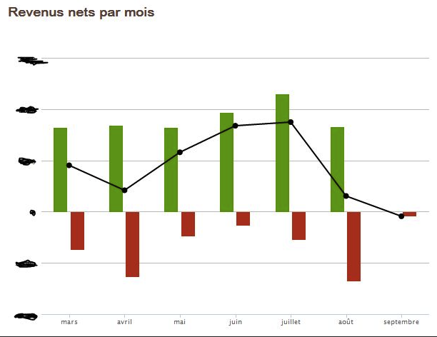 Voici une image pour illustrer l’idée : un graphique qui montre clairement si nos barres de dépenses sont « contenues » par nos barres de revenus, et surtout, combien de « marge » (l’épargne) il nous reste.