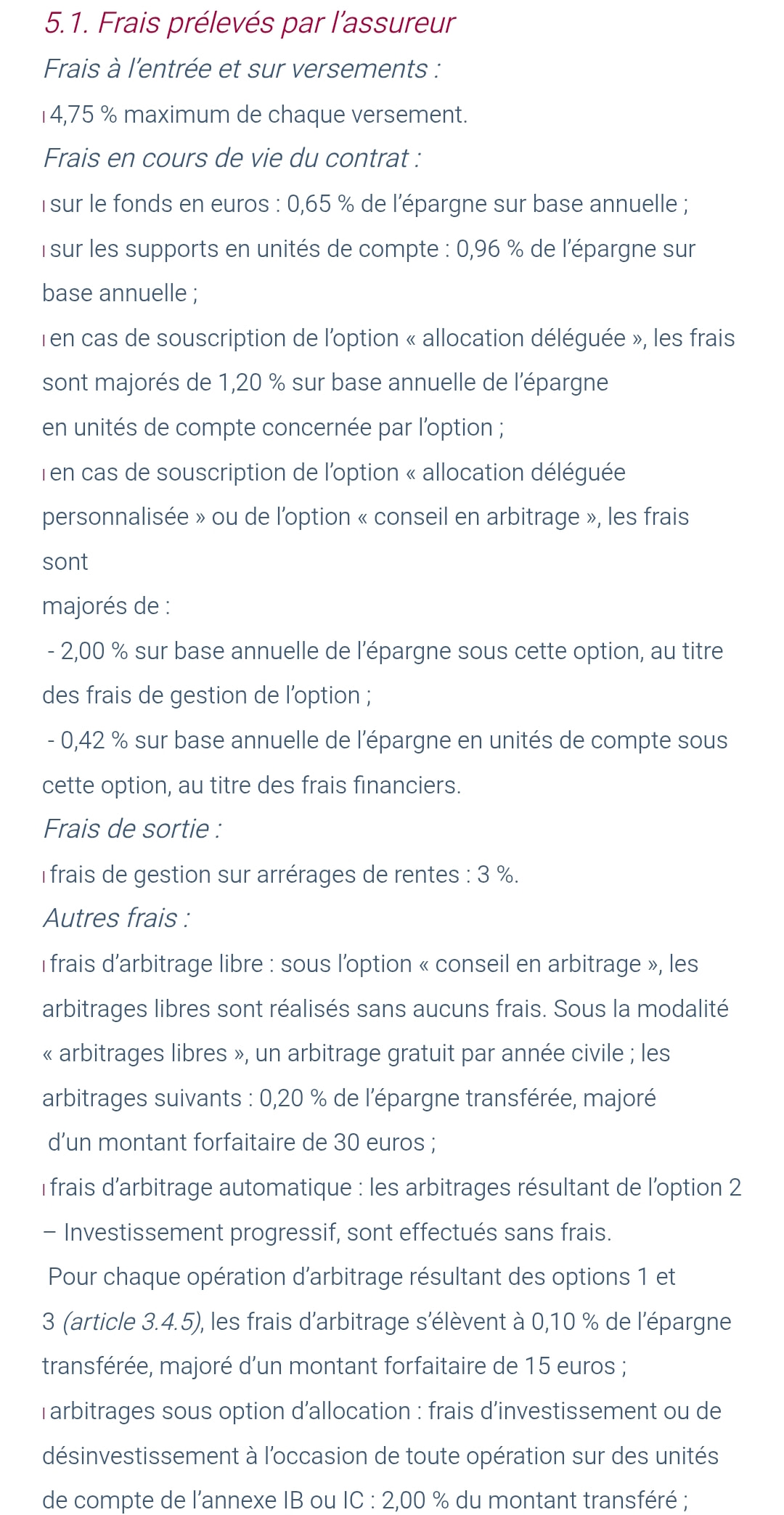 Et même si ce n’est pas explicite sur leur site, en cherchant chez des distributeurs de ce contrat, on trouve que la gestion pilotée-déléguée majoré bien les frais de 1,20 à 2% !!!