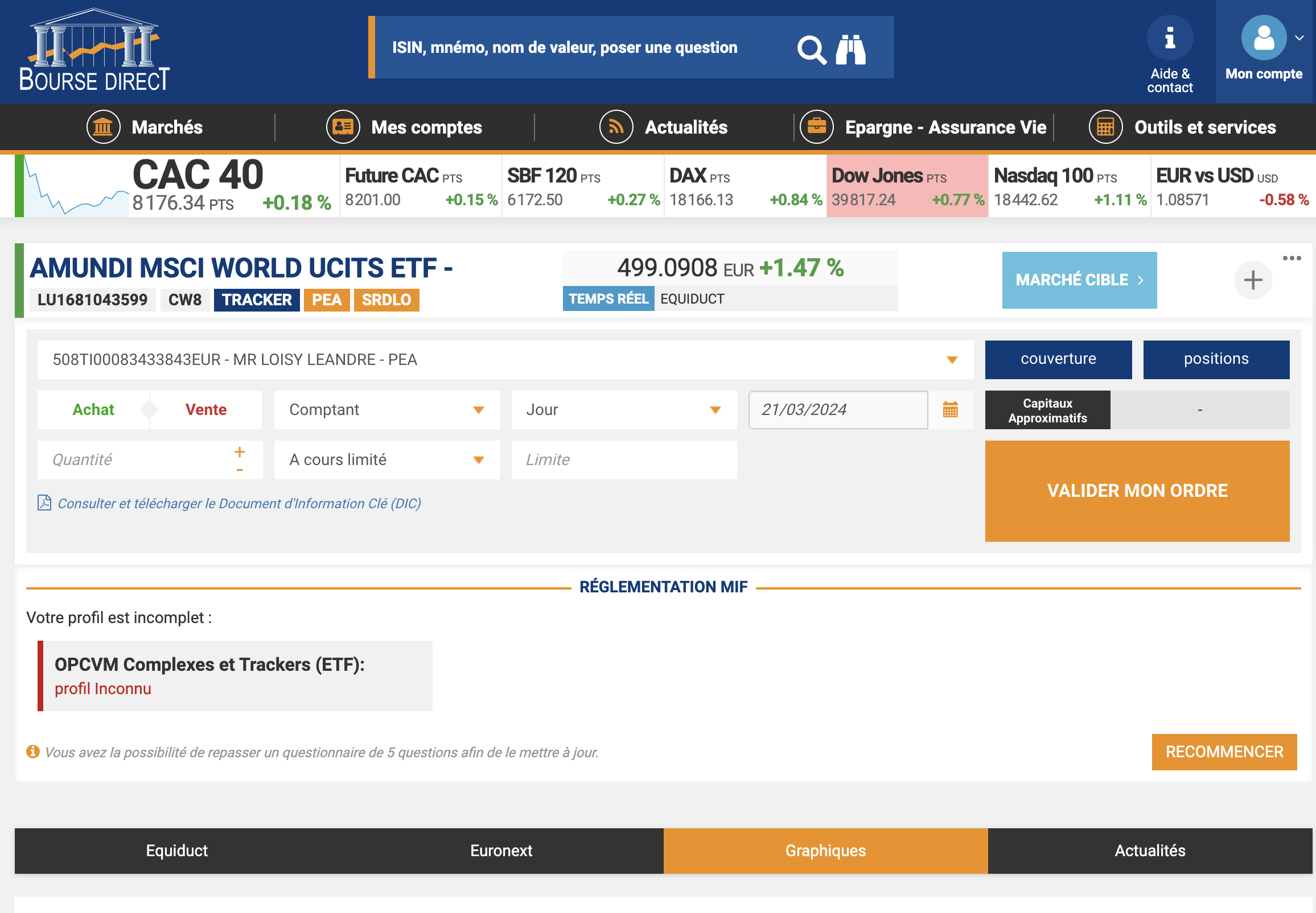 alors que ma ligne est bien sur mon PEA.