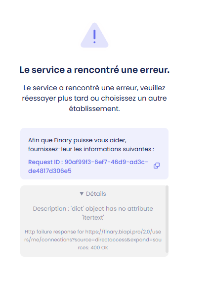 j’ai l’erreur suivante " Le service a rencontré une erreur." mais je ressaye depuis des jours et rien n’y fait.