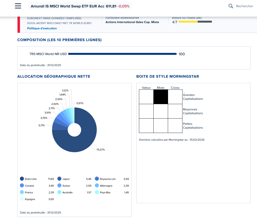 “Approche simple et passive via ETF MSCI World, que je considère comme suffisamment diversifié.”