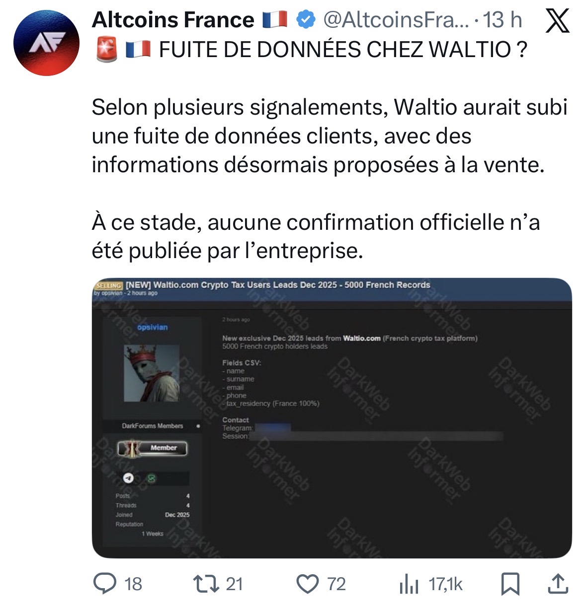 | Une faille chez Waltio? | 27 | 888 | Mars 6, 2026 | |
