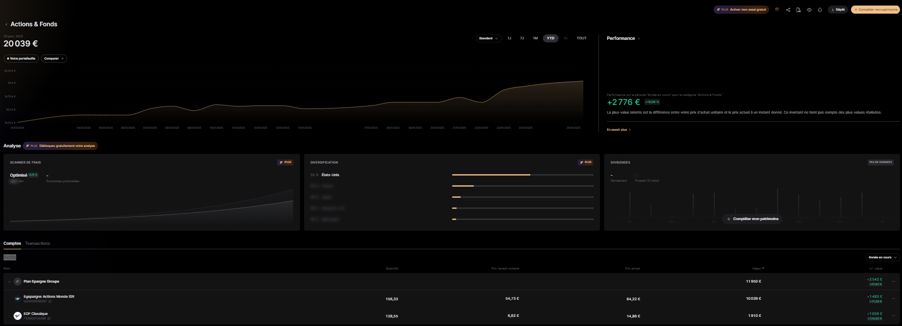 Je relance un sujet car je n’ai pas pû obtenir de réponse… celà concerne un problème de synchronisation de mon PEG/PERCO/PERO Natixis Interépargne, les plus-values YTD/tout sont affichées avec la valeur « depuis le début »… Avez-vous le même problème ? Si, oui avec vous réussi à revenir à la normale ?