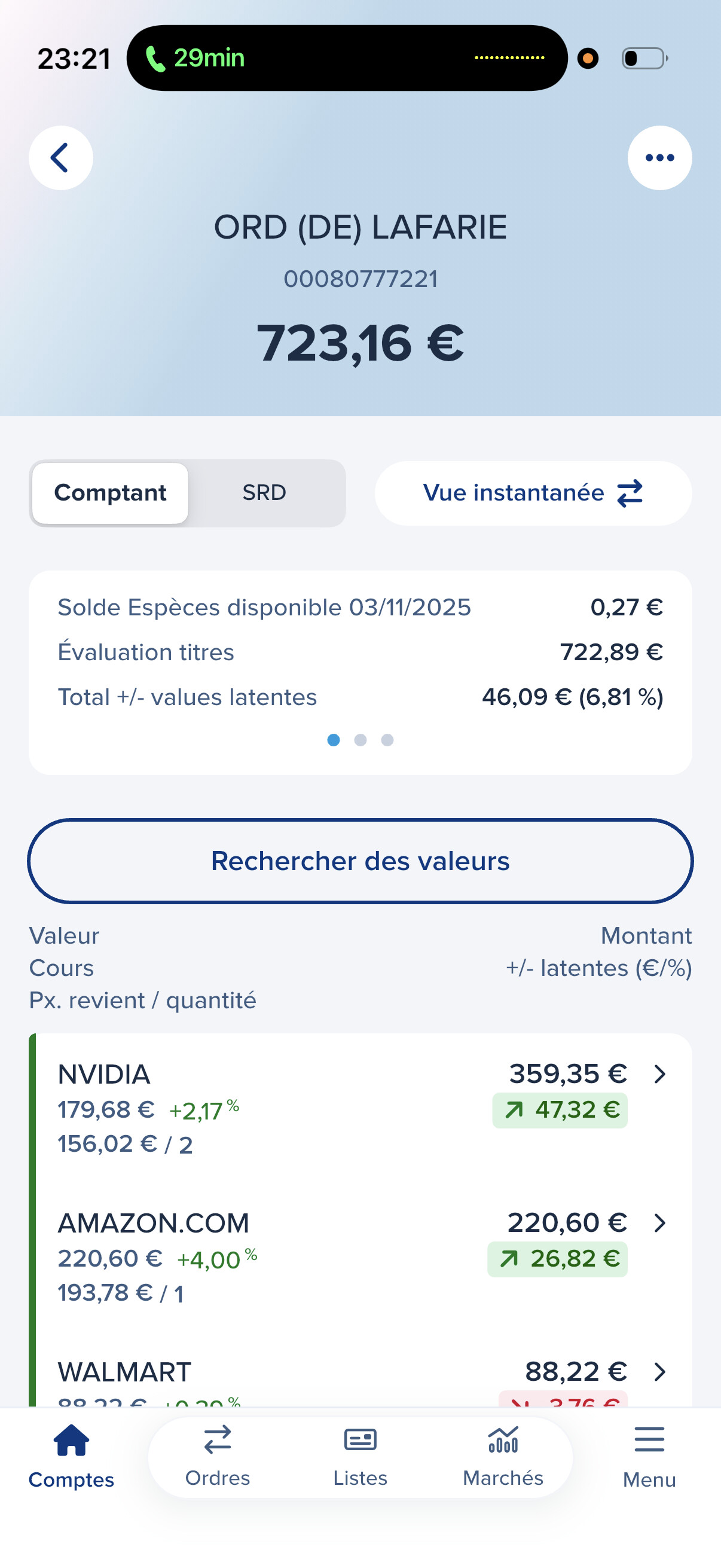 Aujourdâhui, mon portefeuille fait environ 720 âŹ, avec des actions comme NVIDIA, Amazon et Walmart.