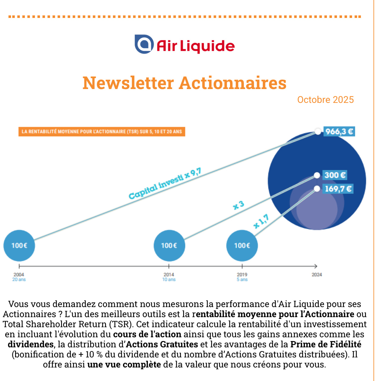 Quand on prend en compte le dividende et les actions gratuites, on obtient le TSR du graphique fourni par Air Liquide.
