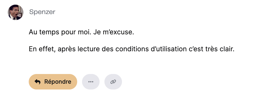 Cependant, je constate que, malgrĂ© la modification de ma rĂ©ponse, tous mes messages sur ce sujet sont « bloquĂ©s », Ă lâexception de mes excuses. Cela mâinterpelle, car ma contribution, aprĂšs correction, respecte scrupuleusement les rĂšgles du forum.