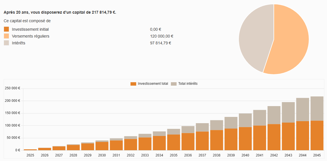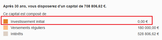 N’apparaissent donc dans le camembert que les versements réguliers et intérêts composés.